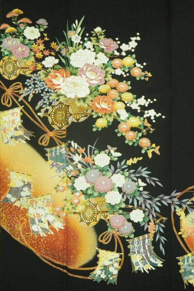 ・左端 お花がたくさん描かれた華やかな黒留袖です。