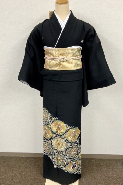 黒留袖: 五つ紋の黒留袖は、すべての着物の中で最も格式が高いです。